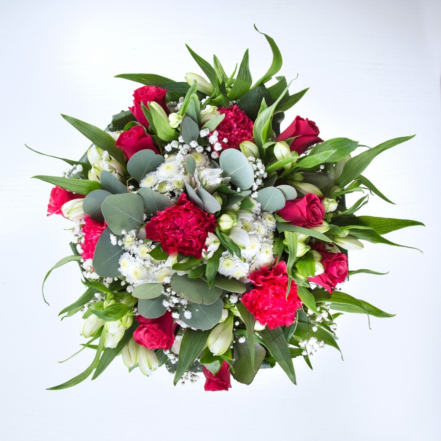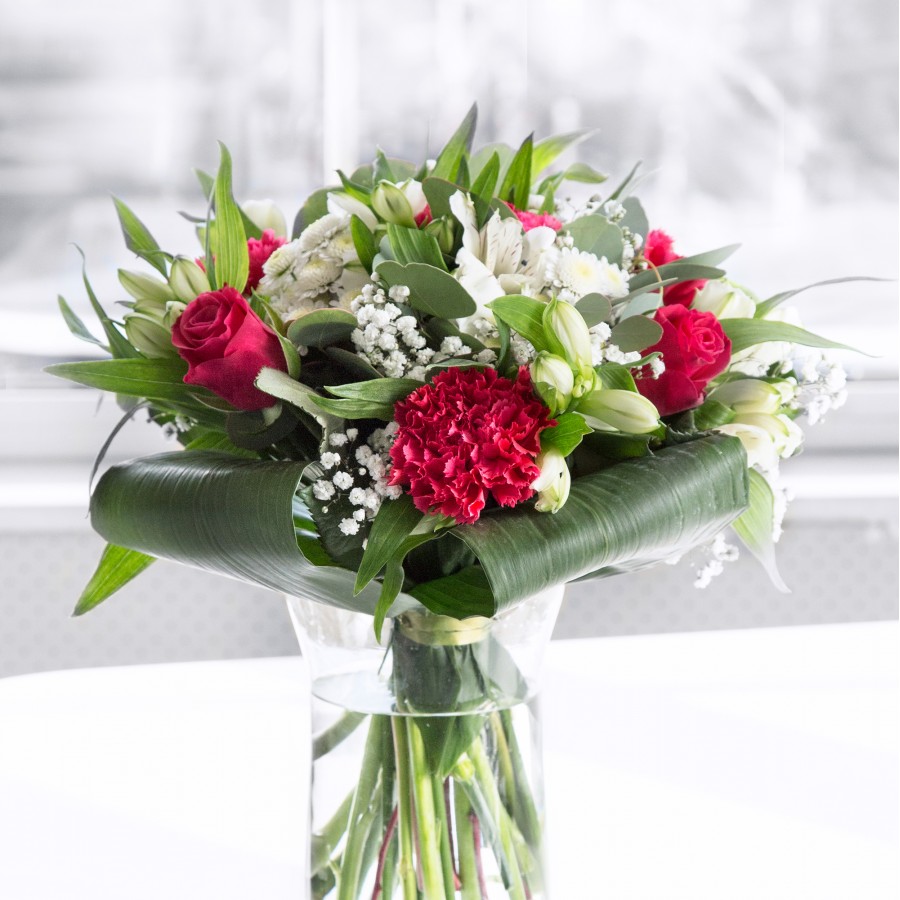 The elegant mix of red and white flowers was stunning. The bouquet arrived on time and was beautifully arranged.