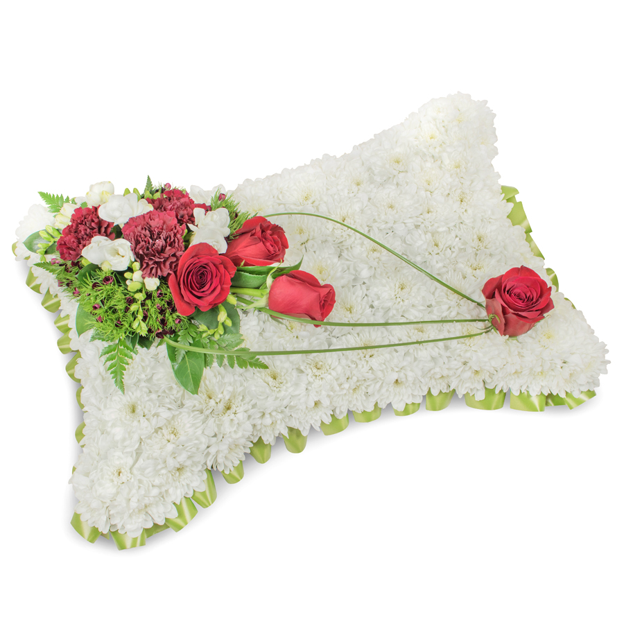 Impart sincere condolences with our refined floral creation, showcasing an elegant collection of blooms destined to convey compassion. This arrangement features pristine white chrysanthemums, vibrant red roses, delicate white freesias, and luxurious dark red carnations highlighted with dianthus and bear grass. Each flower is painstakingly hand-selected to ensure lasting freshness and natural beauty.
